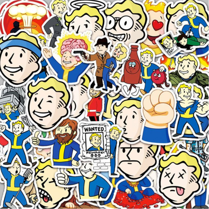 50/10Pcs Autocolantes De Cartoon Fallout Stickers Para Telefones De Bricolage Notebook Capacete De Bicicleta Grafite Decoração À Prova D'água Presentes De