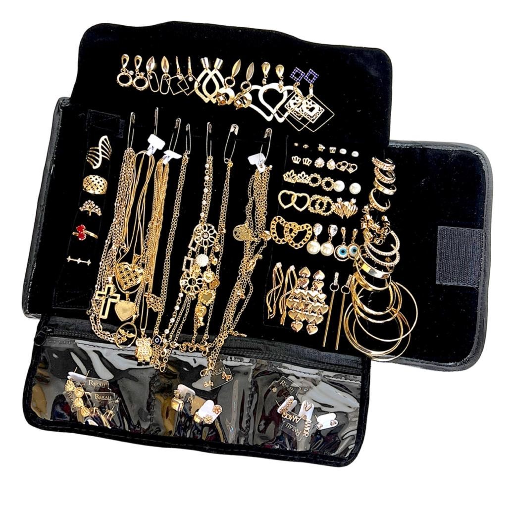 Kit Semi com 110 Peças Joias Folheadas A OURO 18K E PRATA 925 para revenda.