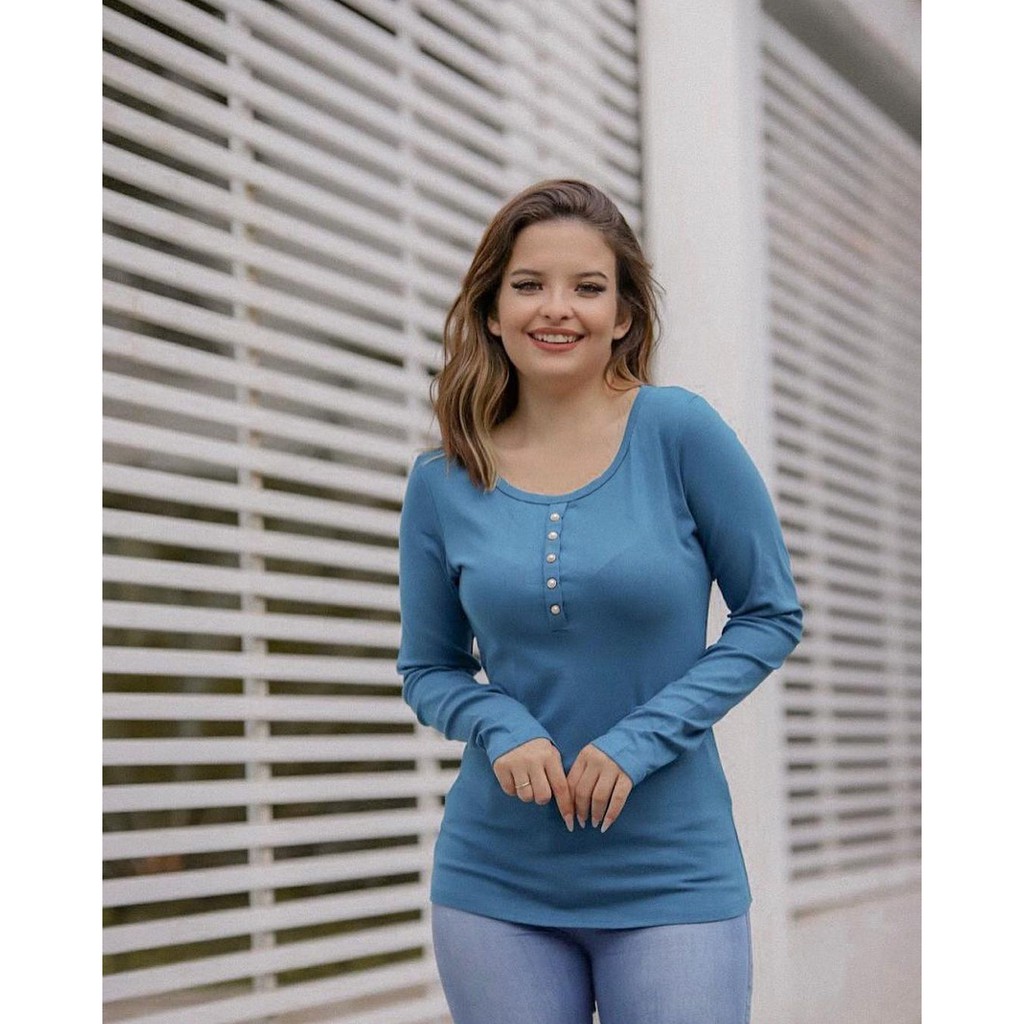 Blusa de Frio Camiseta Feminino Manga Longa liso Outono inverno