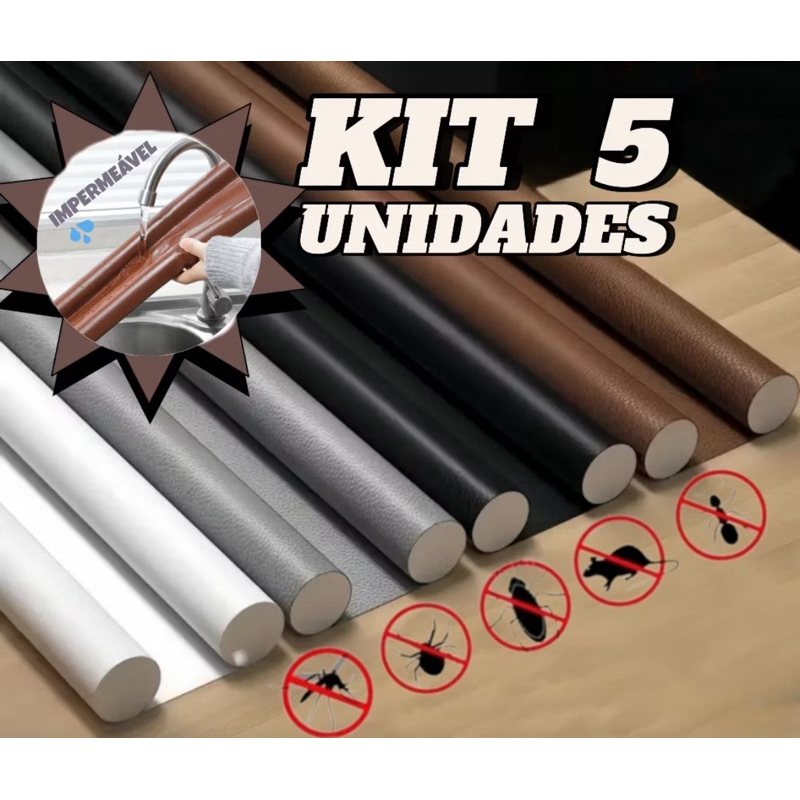 Kit 5 Veda Porta AJUSTÁVEL Proteção Protetor de Porta Impermeável Rolinho Duplo 80cm Comprimento