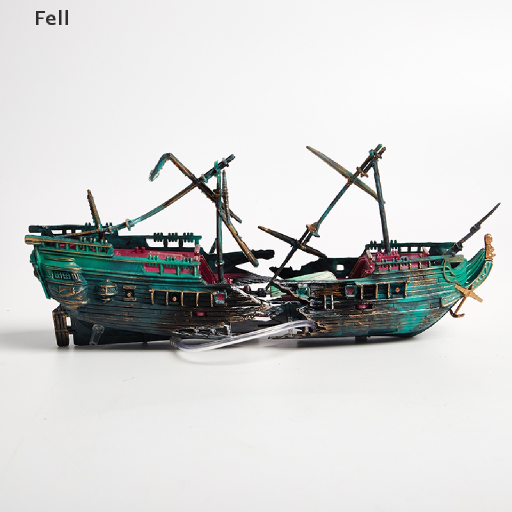 [Fel] Aquário Navio Pirata Paisagem De Peixes Naufrágio Decoração De Barco Resina Ornamento COD