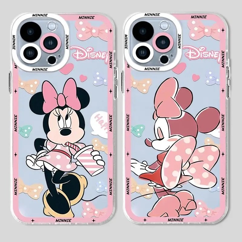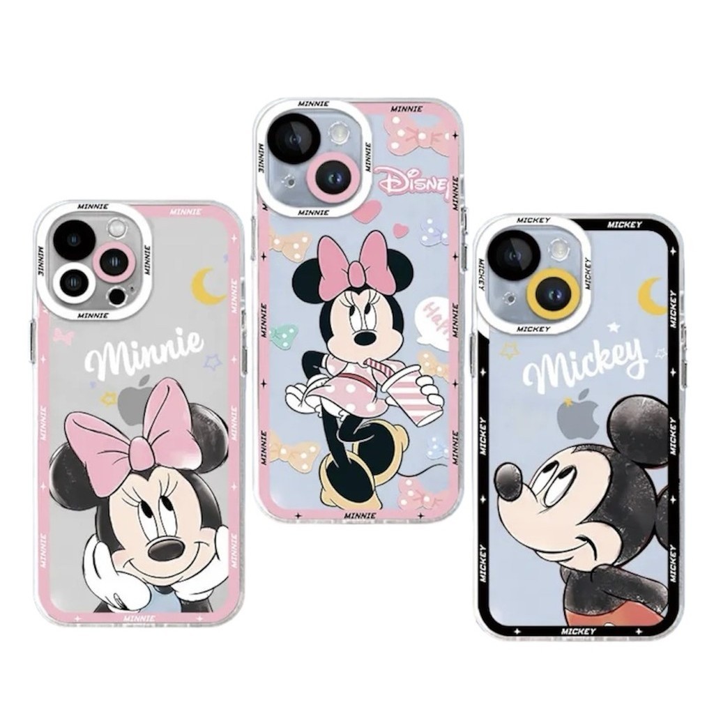 Capinha de Celular Minnie e Mickey Mouse Capa da Disney Para iPhone 11 12 13 14 15 Pro Max Xr 7 8 Plus Xs Case Silicone Flexível Personalizada desenhos Disney Proteção de lente