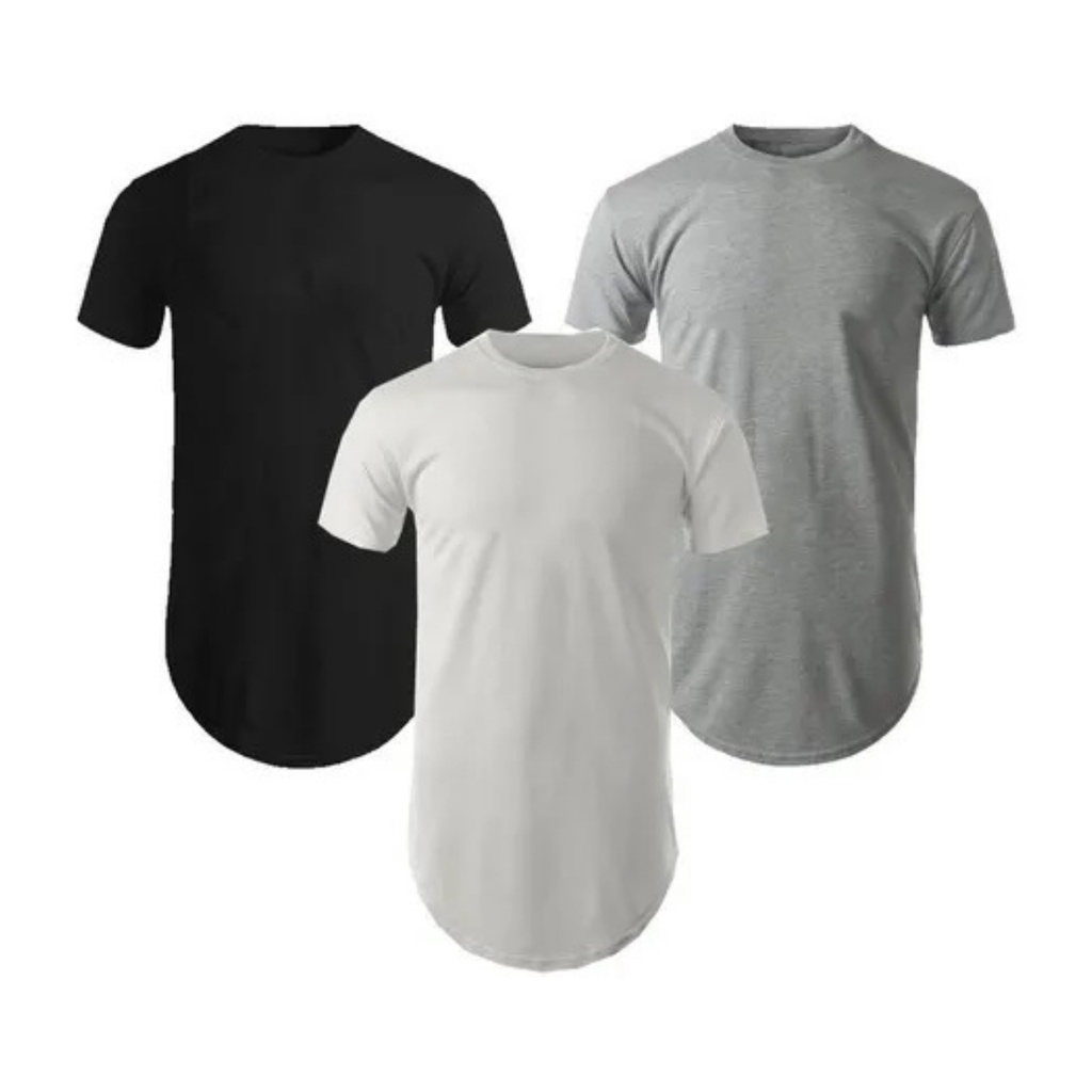 Kit C/ 3 Camisa Longline Masculina Básica Gola Redonda Lisa Promoção