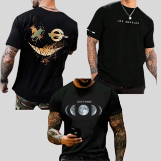KIT 3 Camisetas , camisa Masculina Estampada Trio Coqueiros Gola Redonda e estampa LOS ANGELES E LUA 100% Algodão, camisa masculina estampada