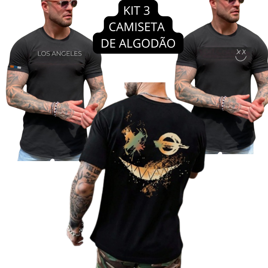 KIT 3 Camisetas , camisa Masculina Estampadas Gola Redonda e estampas estilosas