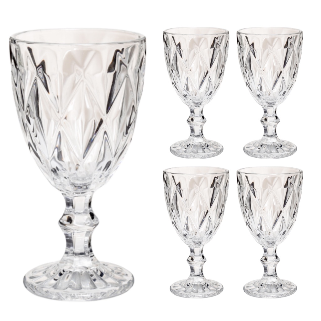 Jogo Taça Diamante Copo Vidro Transparente Bico De Jaca Diamond Luxo - 4 Peças