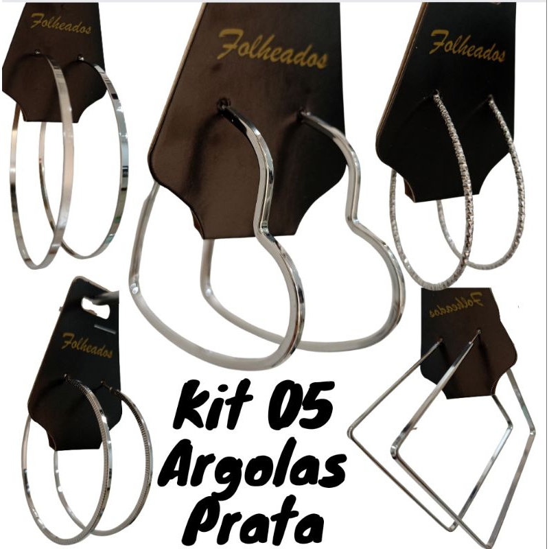 kit de brincos de argolas Com 05 pares banhado a Prata 925 com Garantia