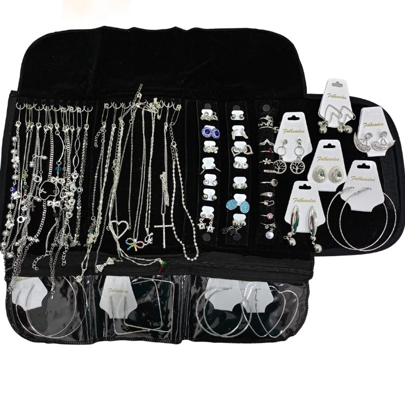 Kit Semi Jóias 20 pçs Folheadas Prata 925 com Mostruário Atacado Revenda Colar Brinco Anel Pulseira