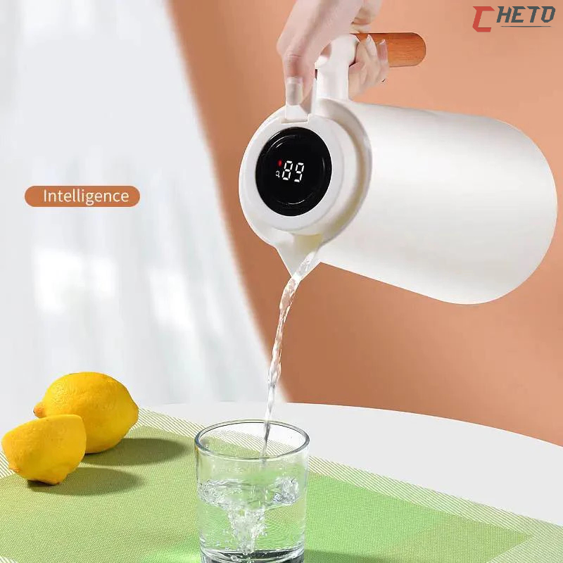 Garrafa Térmica Termometro Digital 1L Café Chá Nórdica Com Cabo Madeira