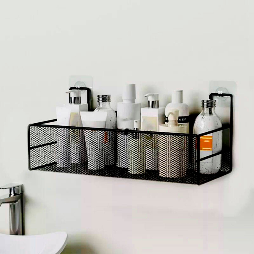 Suporte de Parede para Banheiro Preto, Instalação Adesiva, Sem Furo