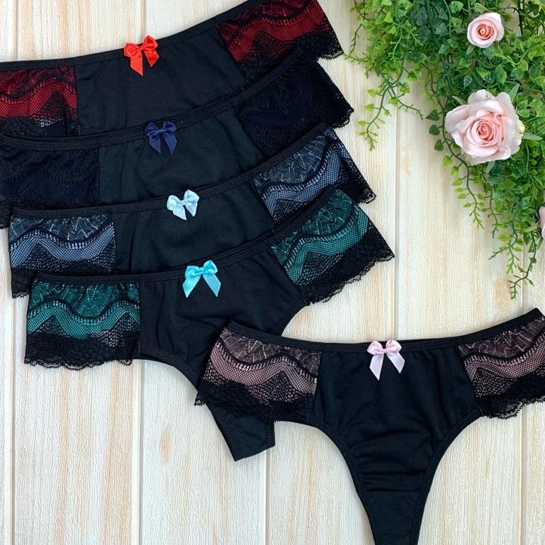 Kit 5 Calcinhas Tanga Fio Dental Renda Lingerie Revenda