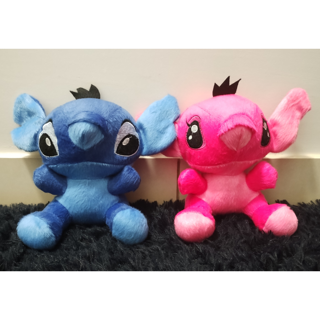 Kit Casal Pelúcia do filme Lilo & Stitch 22 cm antialérgico Rosa e Azul