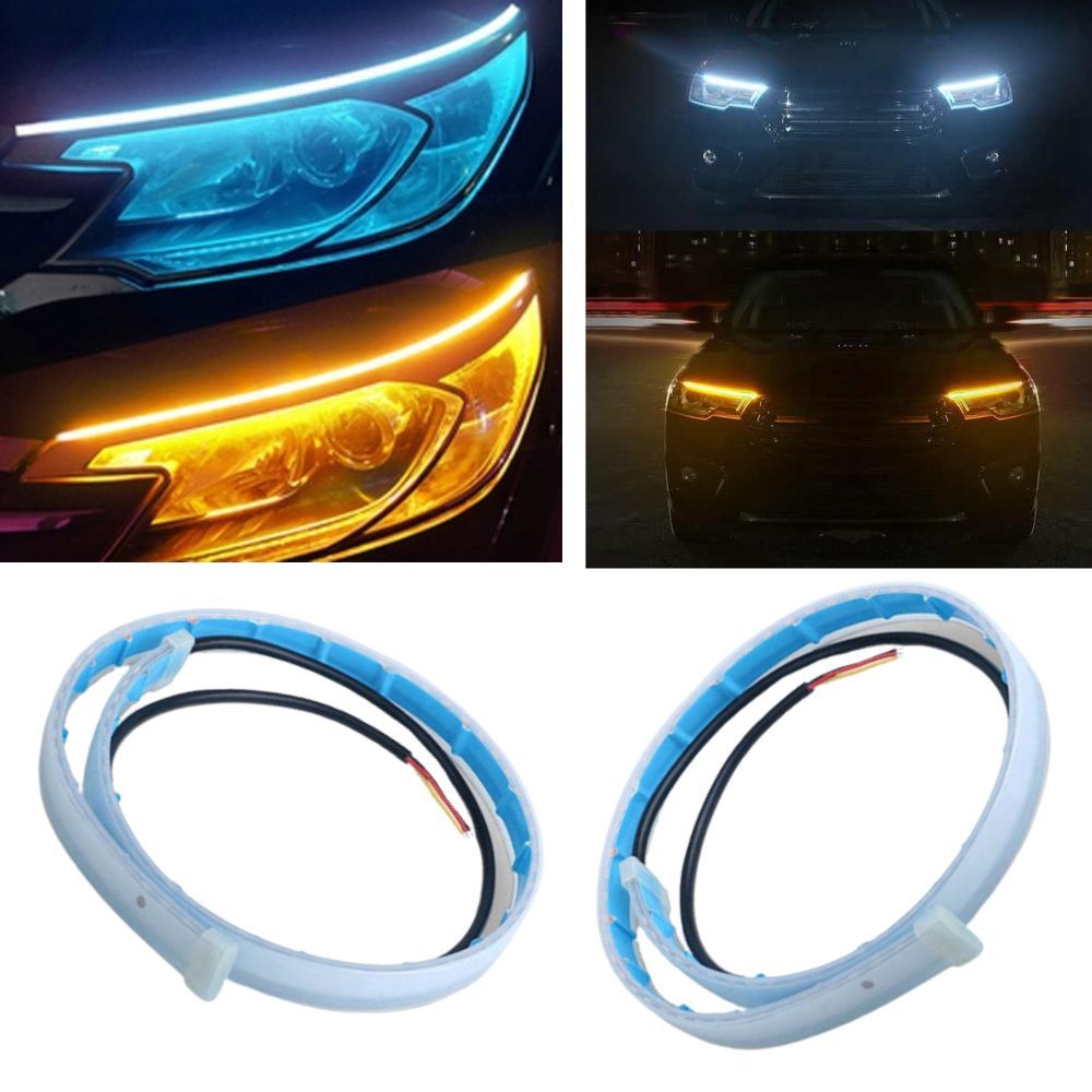 par de Fita Led para Farol de carro Drl Função Start + Seta Sequencial 60cm