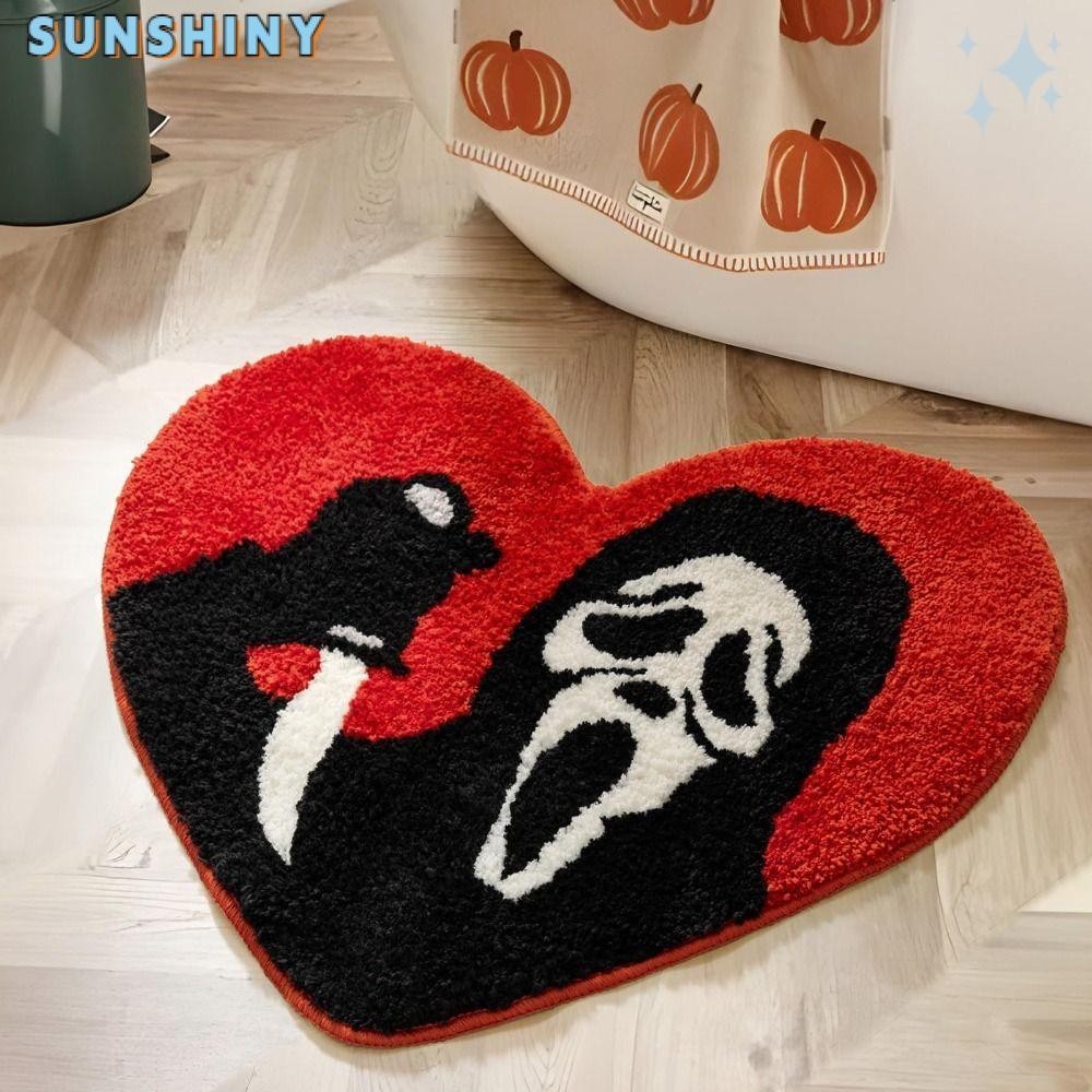 SUNSHINY Tapetes De Banho , Desenho De Crânio Absorvente Suave Assustador , Cara Fantasma Vermelha Preta Não Deslizante Decoração Porta De Tapete Lavável Halloween Banheiro