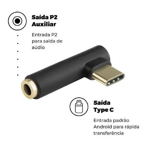 Adaptador Usb Tipo C Para Fone de Ouvido P2 P3 Compatível Samsung Galaxy A53 M53 S20 S21 Fe 5G - KAIDI