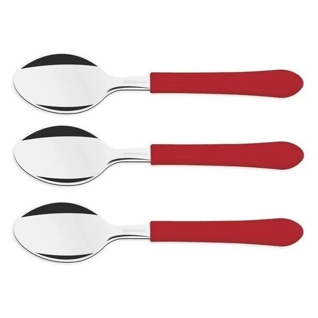 12 Colher Sobremesa Tramontina Leme Aço Inox Vermelho 23186470