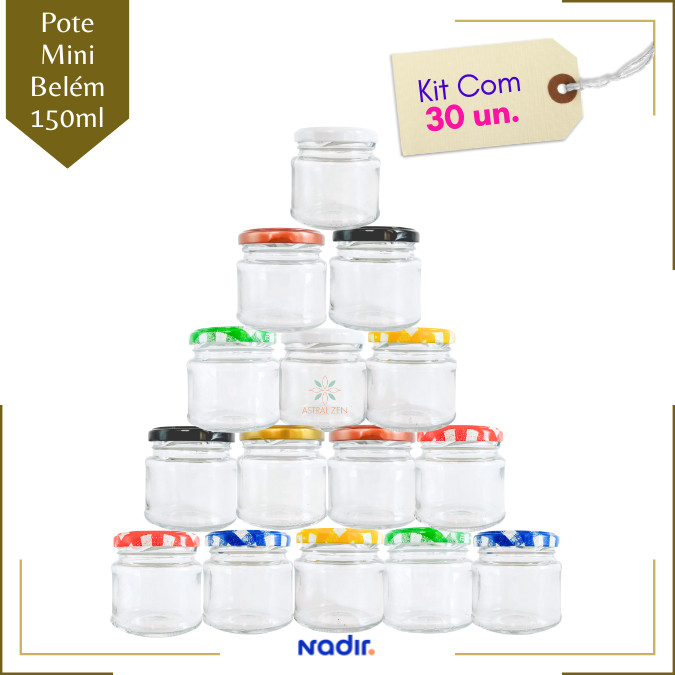 Pote de Vidro 150ml Doces Bolos Geleias Lembranças Com Tampa De Metal - 30 Unds