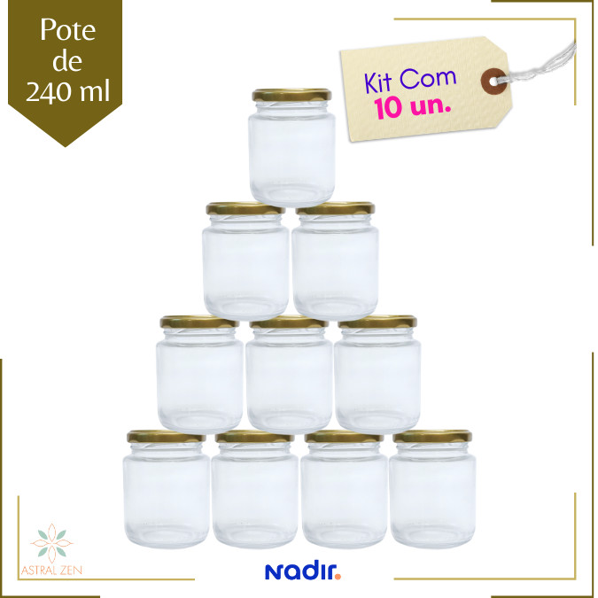 Pote de Vidro 240ml Doces Bolos Geleias Lembranças Com Tampa De Metal - 10 Unds