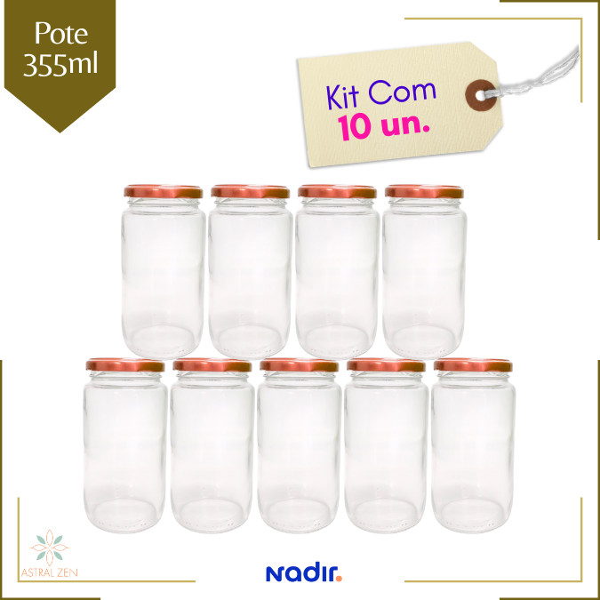 Pote de Vidro 355ml Doces Bolos Geleias Lembranças Com Tampa De Metal - 10 Unds