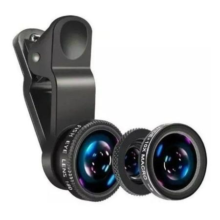 Kit De Lentes 3 Em 1 Olho De Peixe Wide E Macro Universal