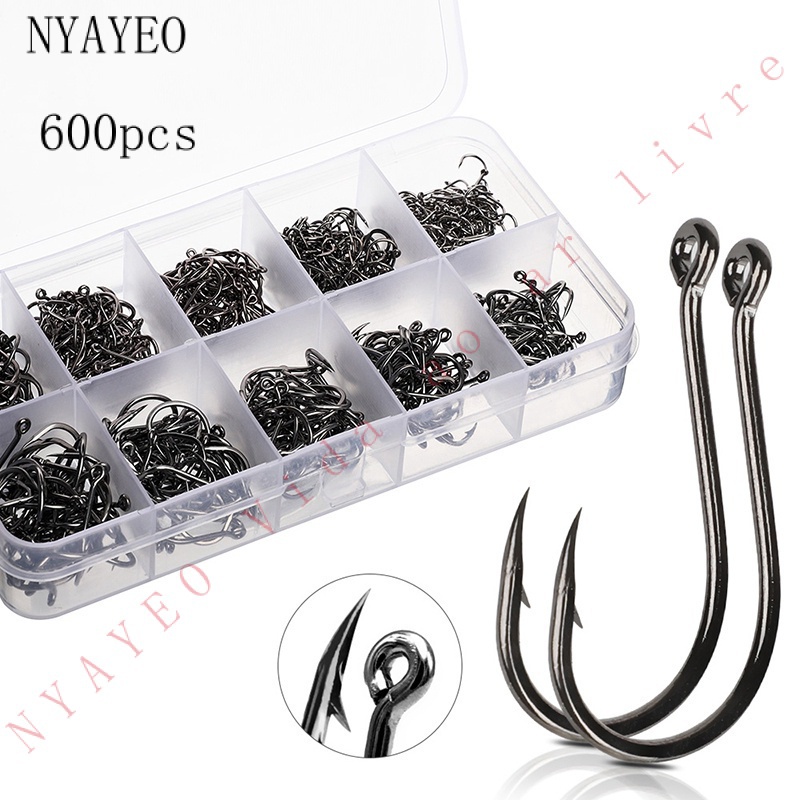 NYAYEO 600 Pcs/Conjunto Anzóis De Aço Carbono De Tamanho Completo/Misto Para Pesca De Carpa