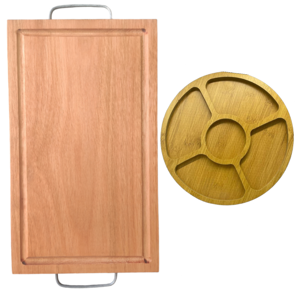 KIT TÁBUA DE CARNE PARA CHURRASCO COM GAVETA, PETISQUEITA E TÁBUA DE COZINHA