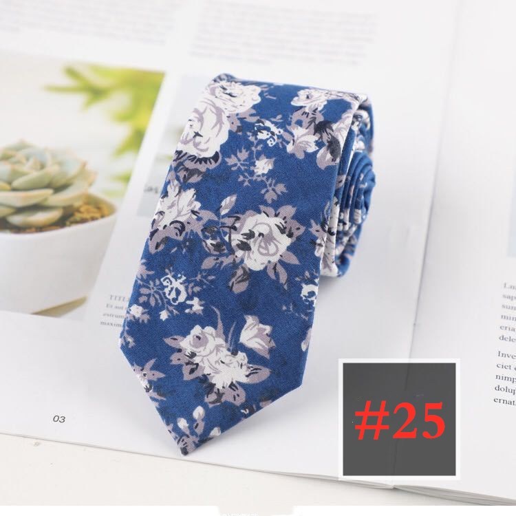 Gravata Masculina Azul Floral 6 cm Algodão Moda Com Estampa De Gravata Borboleta