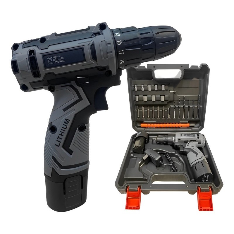 Parafusadeira Furadeira Chave de Fenda Elétrica Kit 23 Peças Portátil Sem Fio 2 Baterias v12 voltz 1300mAh Com Maleta