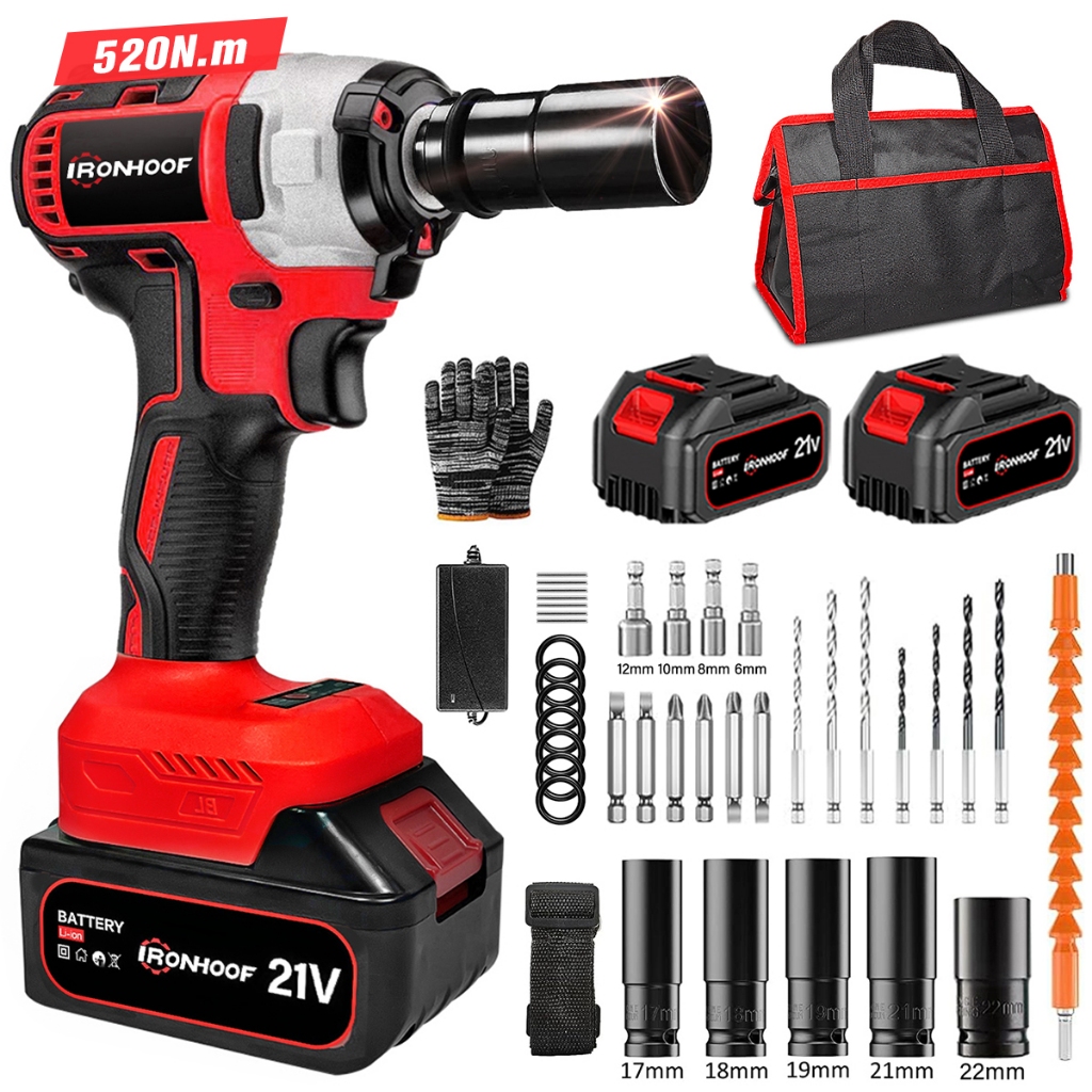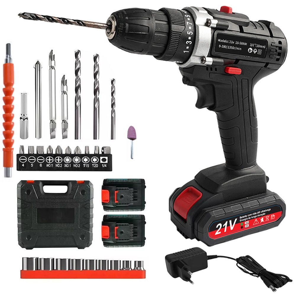 Chave De Impacto Elétrica Parafusadeira Furadeira Sem Fio 2 Baterias 21V Brushless