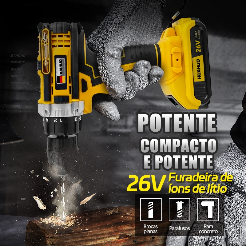 HUA HUO Furadeira com chave de fenda(2 baterias) Furadeira de impacto sem fio com estojo 24 acessórios
