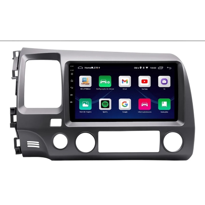 Central Multimídia Android 12 Honda Civic 2007 a 2011 - Tela 9", 1Gb RAM + 32Gb ROM, GPS, Wi-Fi, Carplay, Bluetooth