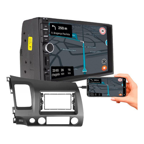 KIT CENTRAL MULTIMIDIA MP5 7 POL COM MOLDURA HONDA CIVIC 2007 A 2011