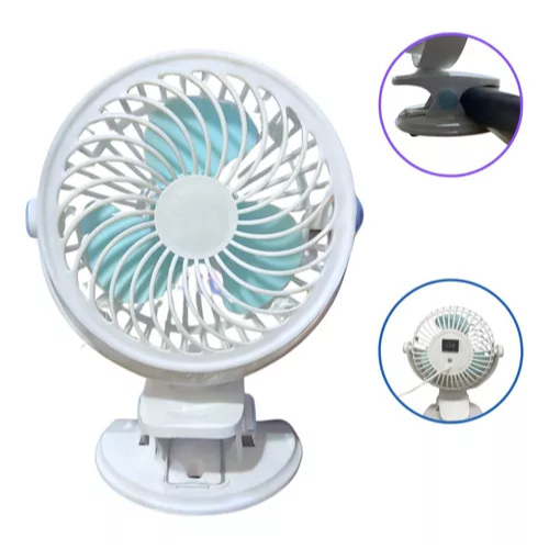 Ventilador De Mesa 20cm Mini branco Silencioso Clip Portátil USB 3 pás