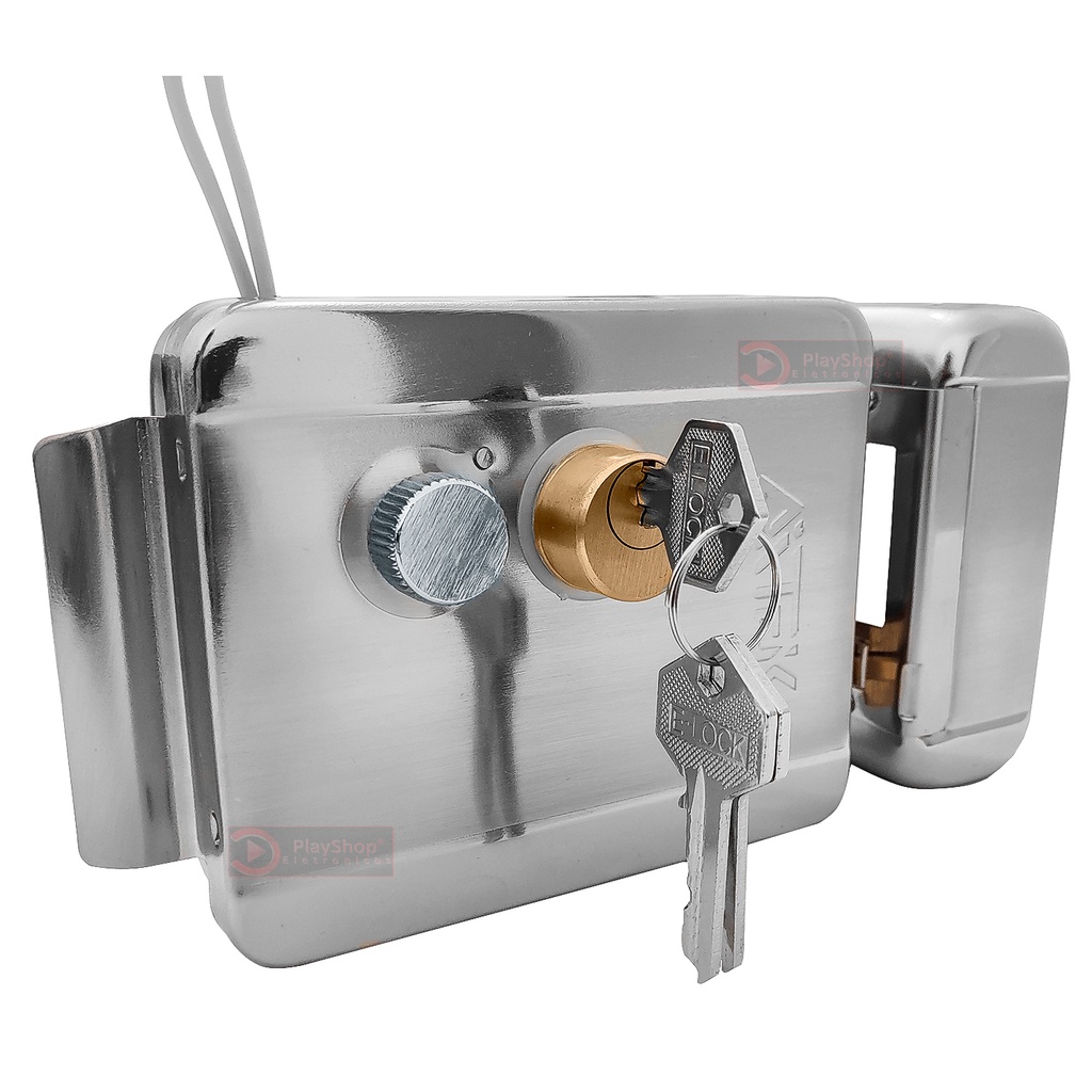 Fechadura Eletrica 12V Reversivel Anti Furto Chave Com Trava Sobrepor Para Porta Portão