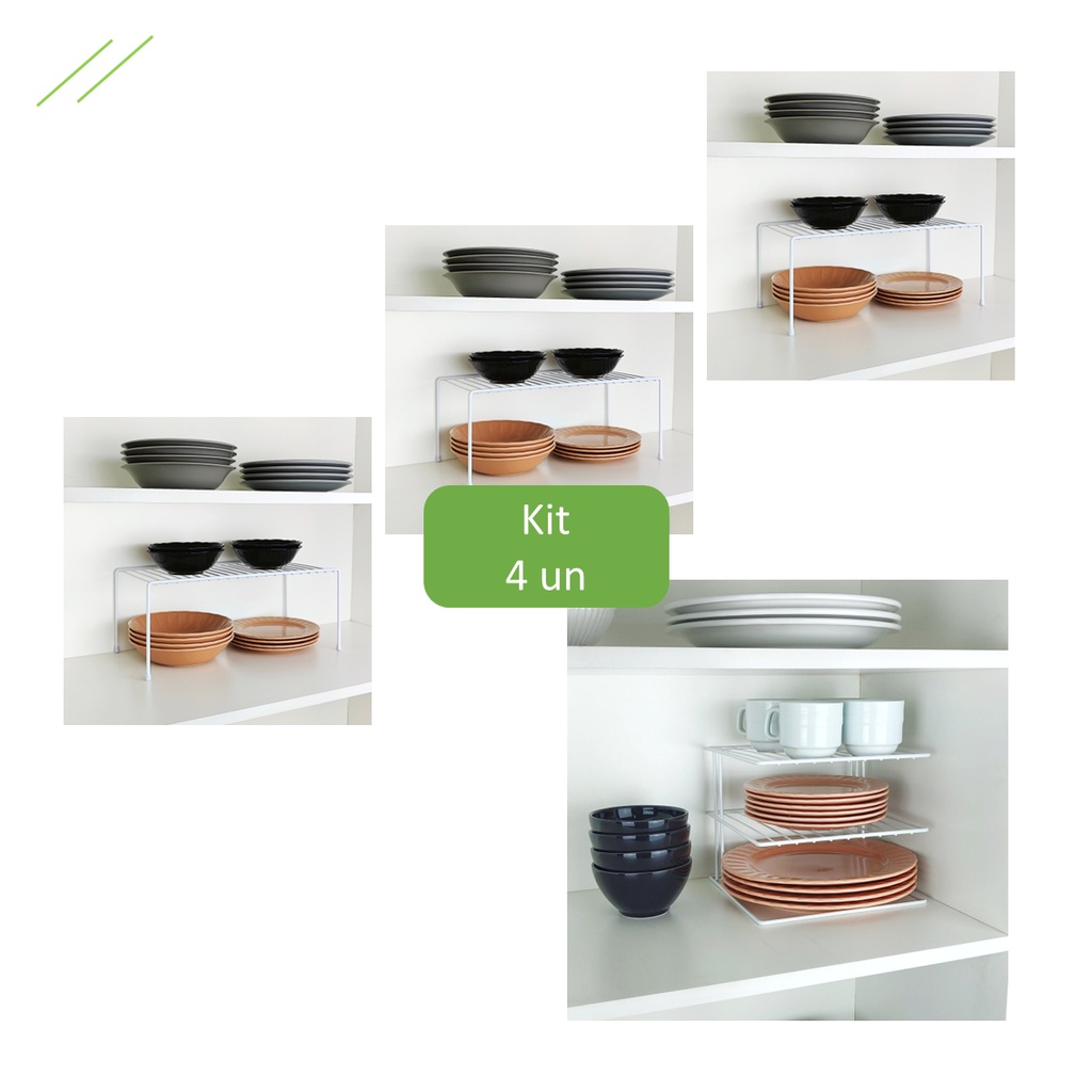 Kit Organizador Armário Cozinha Xícara Panela Prato Aço 4 Un Branco