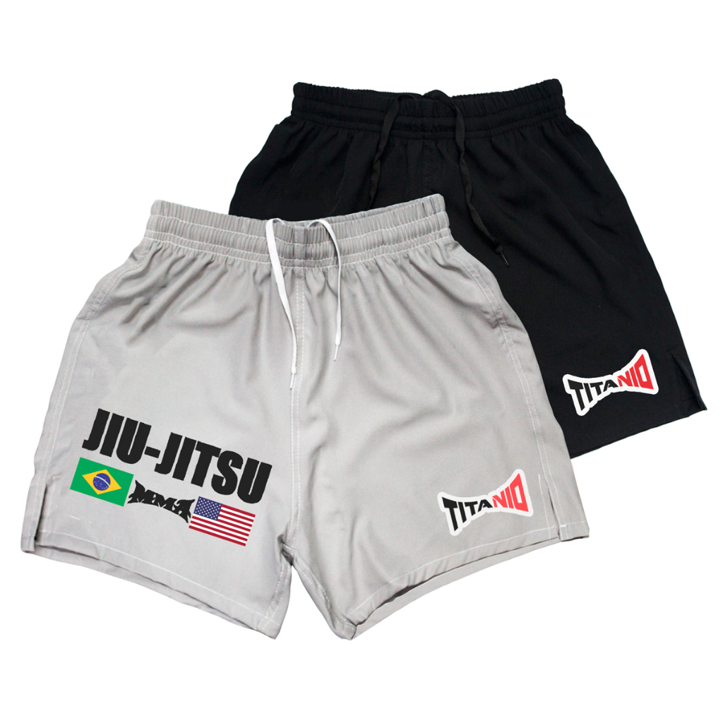Short Bermuda Nogi Jiu Jitsu Com Corte Lateral Elastano Treino Academia MMA Titanio