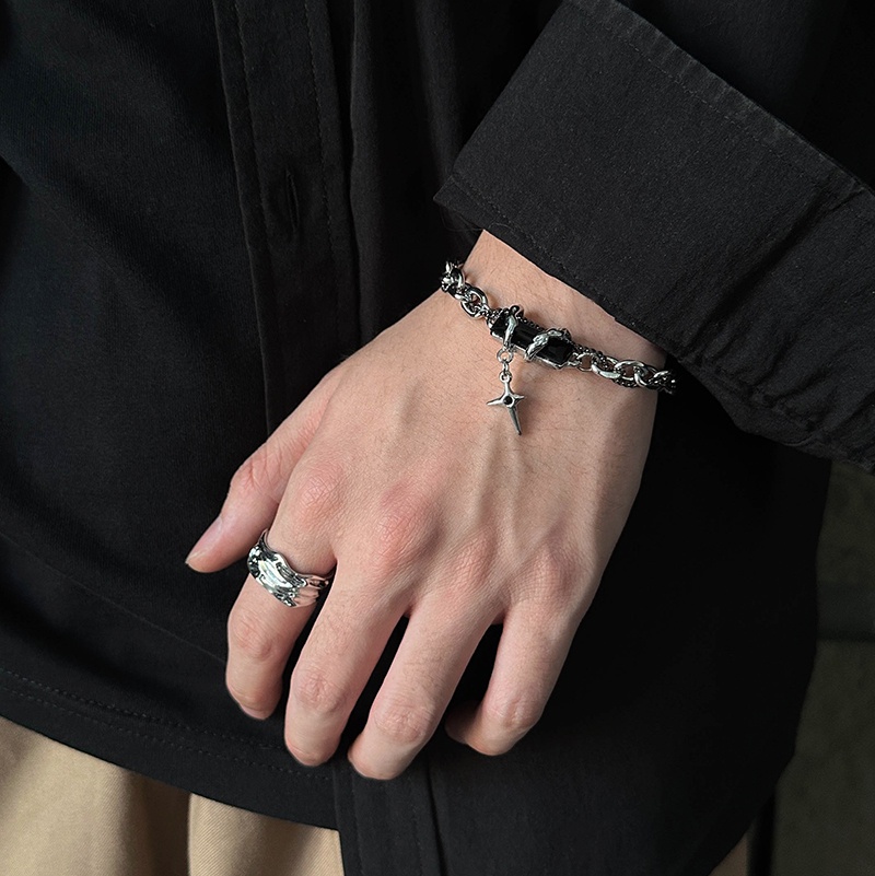 Pulseira De Pedra Preciosa Preta Embrulhada Com Um Desenho De Nicho Para Instagram Masculino E Feminino . Versátil , Luxo Leve , Acessórios De Alta Qualidade Da Moda