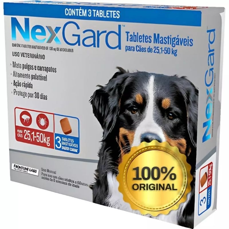 kit 3 nex--gard anti pulgas e carrapato para cães de 25 a 50 kilo