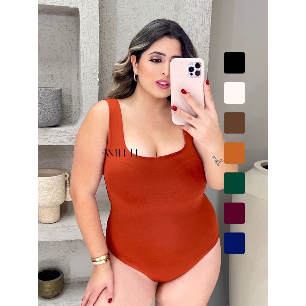 Body Feminino Decote Quadrado Plus Size Alça Larga Suplex Poliamida Blusinha