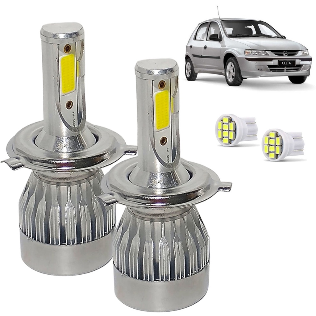 Kit Super Led Celta 2000 2001 2002 2003 2004 2005 Farol Alto e Baixo H4 20000 Lumens
