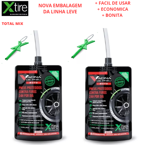 Kit 2 Vacina Anti Furo Para Pneu Câmara Xtire Moto Titan Fan Fazer Xre Bros Lander - 2 Frasco 250ml