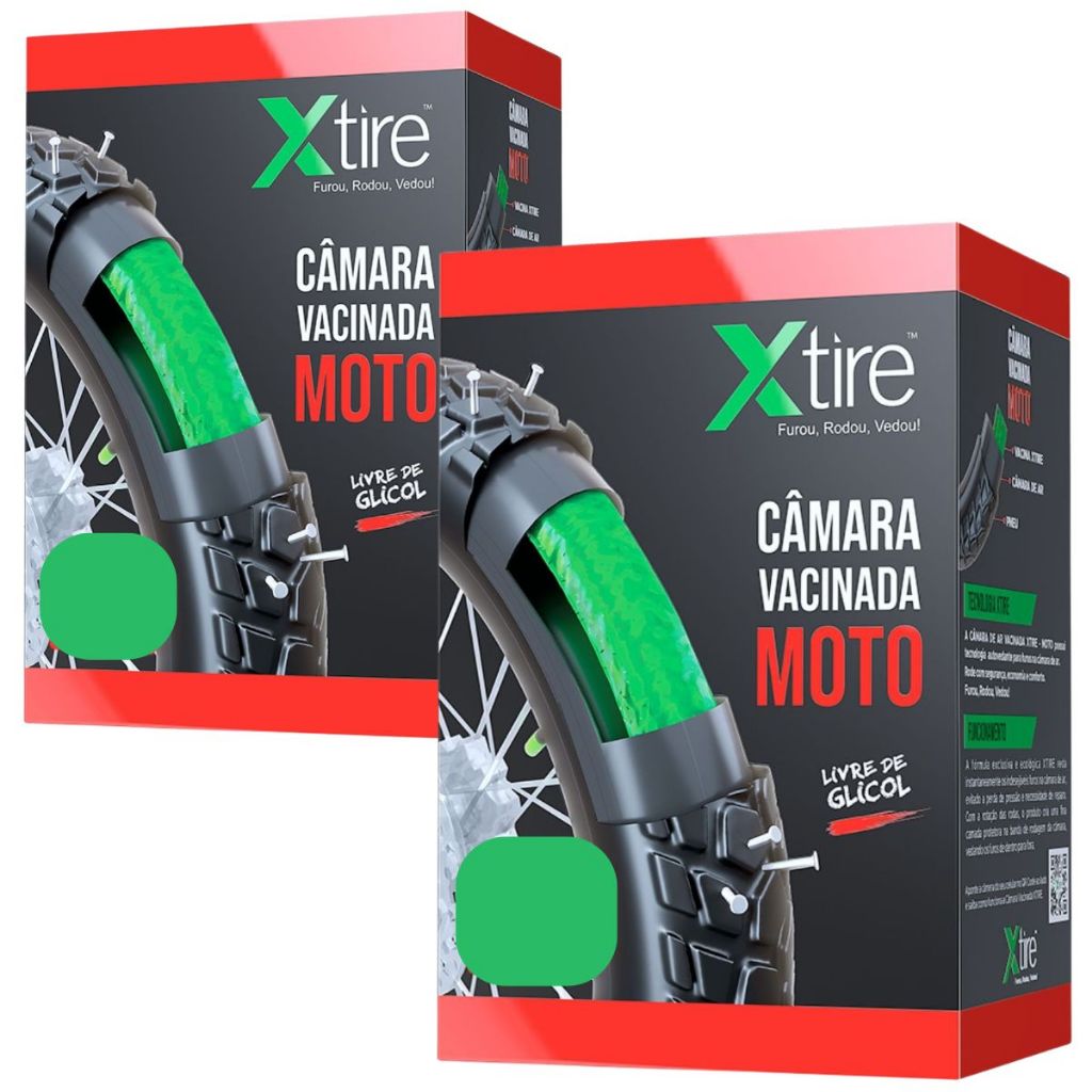 Kit 2 Câmara de Ar Para Moto Vacinada Xtire Com Selante P/ Cg Titan Fan Tornado Xre Biz Pop Crypton Bross Lander Crosser