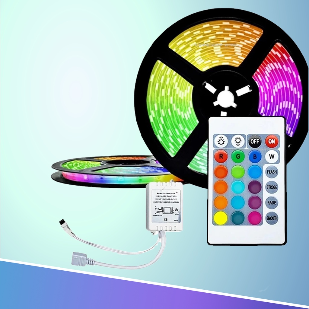 Fita LED À Prova D'água 5m Ultra Rgb 3528 + Controle Sem Fonte 24 Chaves Para Decoração De Parede Interna