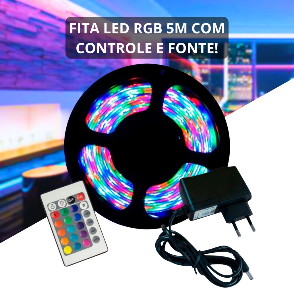 FITA LED A PROVA D'AGUA 5M ULTRA RGB 3528 +CONTROLE e FONTE.