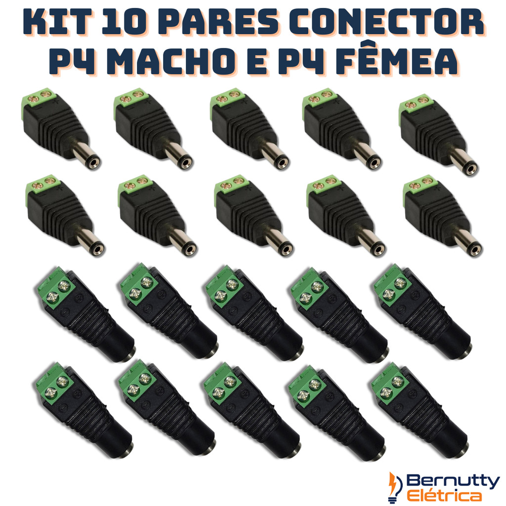 Kit 10 Pares Conector Para Câmeras Led P4 Macho E P4 Fêmea