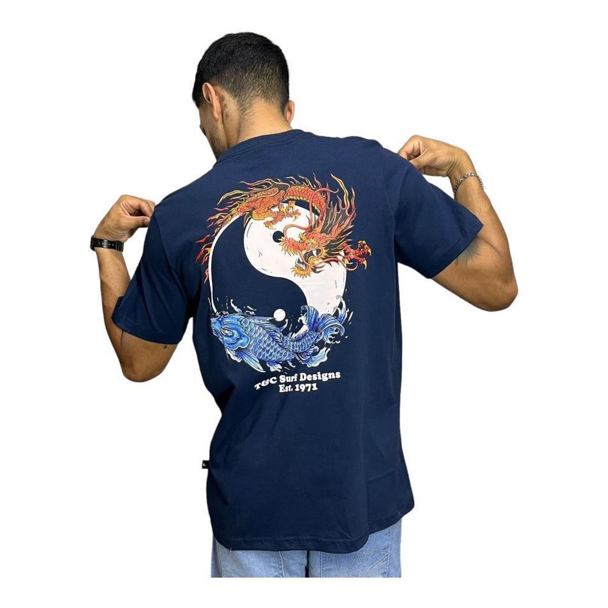 Camiseta Estampada Town Country Na frente Yin Yang Stoke & Aloha Colorido Nas Costas 100% Algodão 30.1 Alta Qualidade