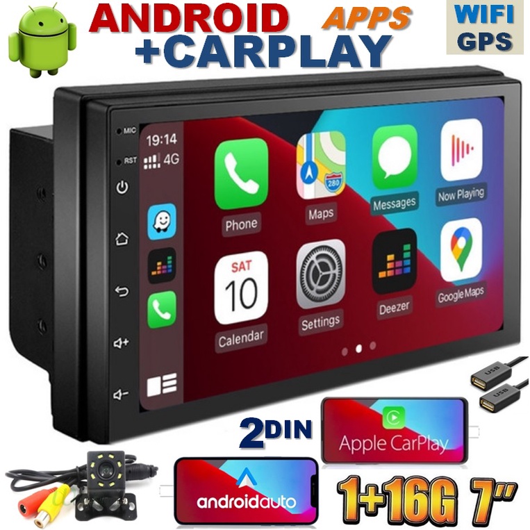 Kit Central Multimídia Android 2din Completa! Apple Carplay Android Auto Wifi Gps + Câmera de Ré