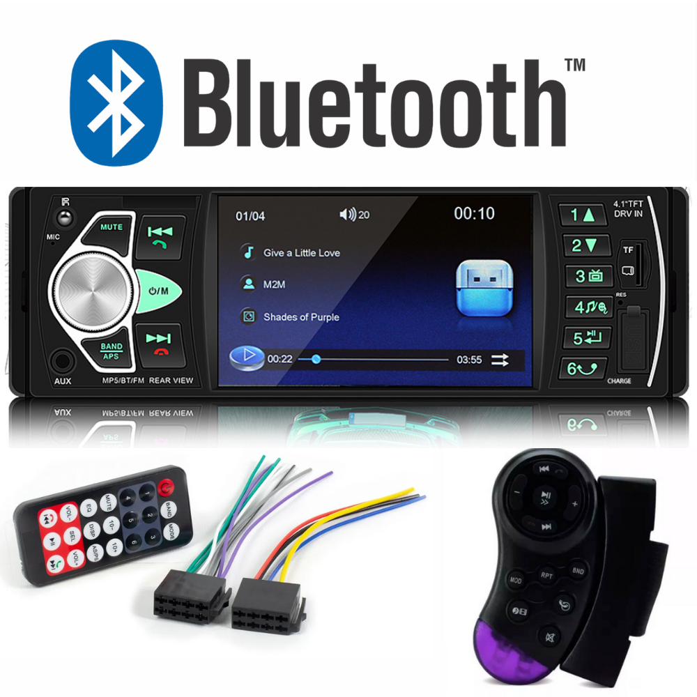 Central Multimidia MP5 1 Din Universal + Controle de Volante Bluetooth Saída de Vídeo Passa Videos Usb Automotivo Tela 4.1 Polegadas