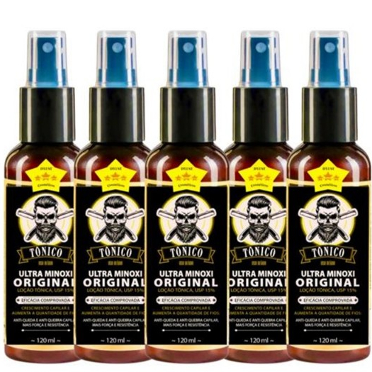 Kit 5 Tônico Pro Minoxi Advanced 120ml Para Crescimento de Cabelo Barba e Sobrancelhas