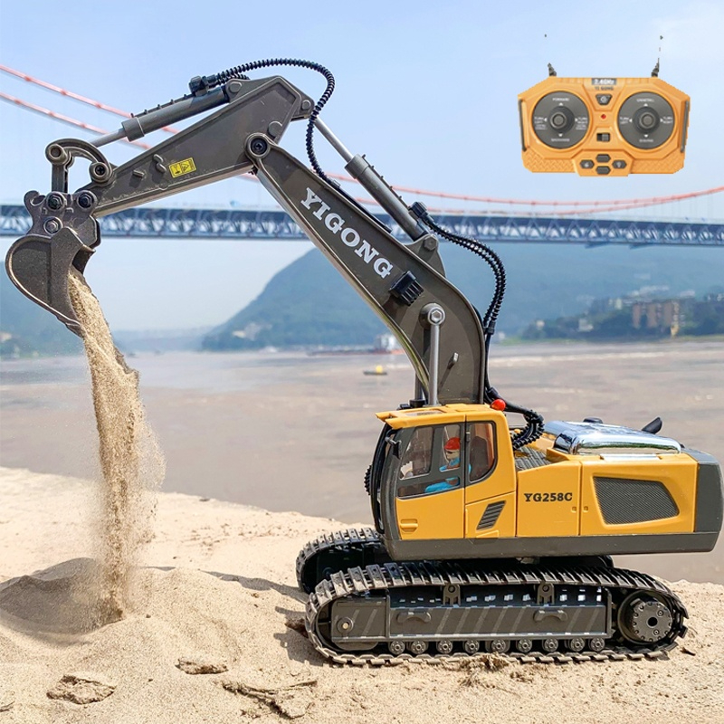 Escavadeira e Pá Carregadeira De Controle Remoto 1:20 2.4GHz 11 Canais Com Sons e Luz